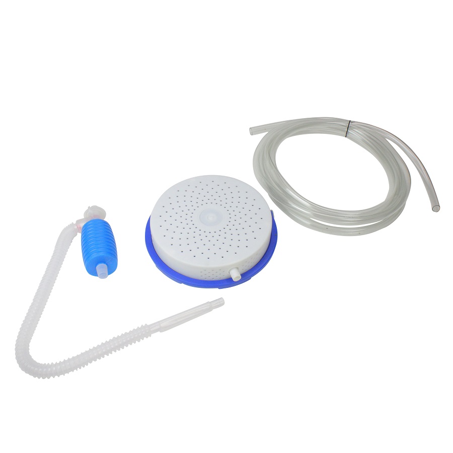 • To use, hold cover drain under water’s surface and pump blue siphon until water starts to flow