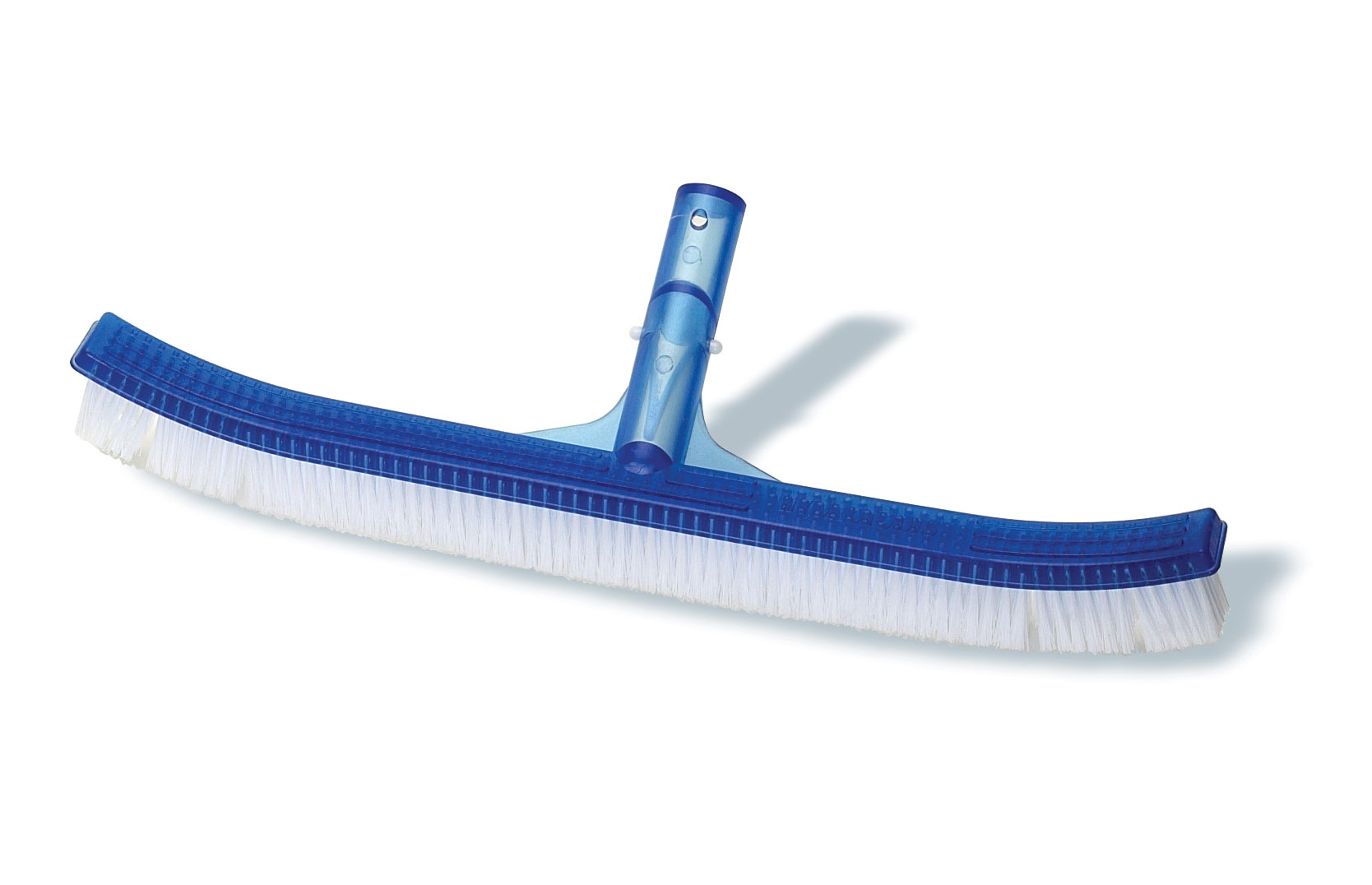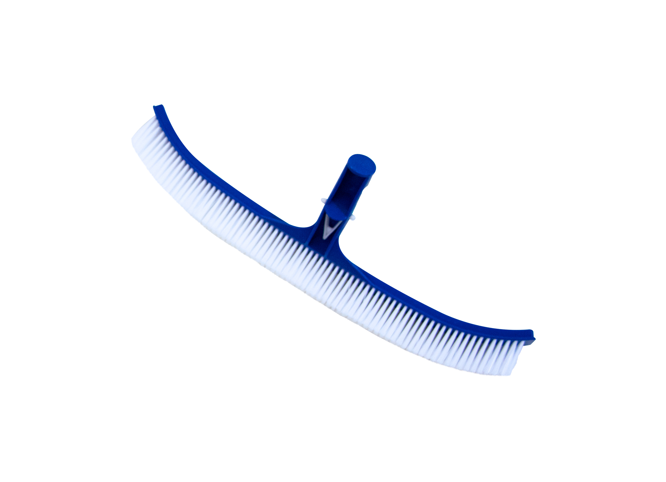 The HydroTools by Swimline 8210 is an 18-inch curved pool brush designed for heavy-duty cleaning of walls, floors, and corners. It features durable nylon bristles, a blue PVC frame, and fits standard telescopic poles. This brush is suitable for various surfaces, including concrete, vinyl, plaster, and fiberglass.