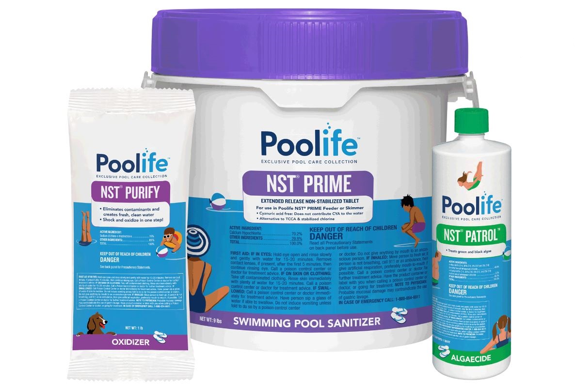 The NST® System includes everything you need to oxidize, sanitize and remove algae from your pool. The NST® Prime Sanitizer uses our proprietary slow-dissolving Cal Hypo technology, which clarifies without adding any Cyanuric Acid (CYA) to your pool water. That means it eliminates bacteria, contaminants and algae without overstabilizing for sparkling clear water that’s ready for fun, all summer long.