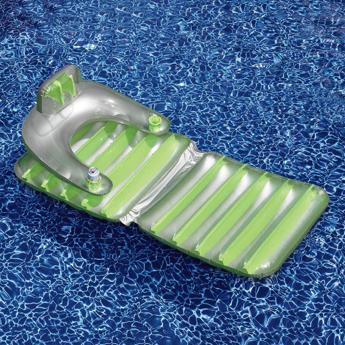 Turn your backyard pool into a relaxing summer oasis with this green and gray striped lounger. Enjoy a drink with the dual drink holder as you float around and soak up the sun! And if you don't feel like lounging you can fold this float up into a chair and dangle your feet into the water.