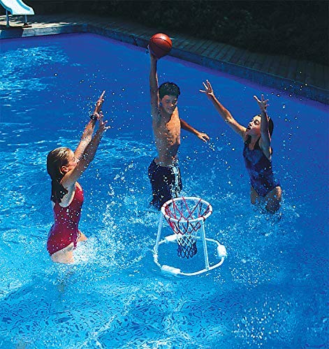 The Swimline Super Hoops Floating Basketball Game is our best quality in-pool floating basketball game. PVC tubing for maximum strength durability . Extra heavy duty net and real feel basketball.