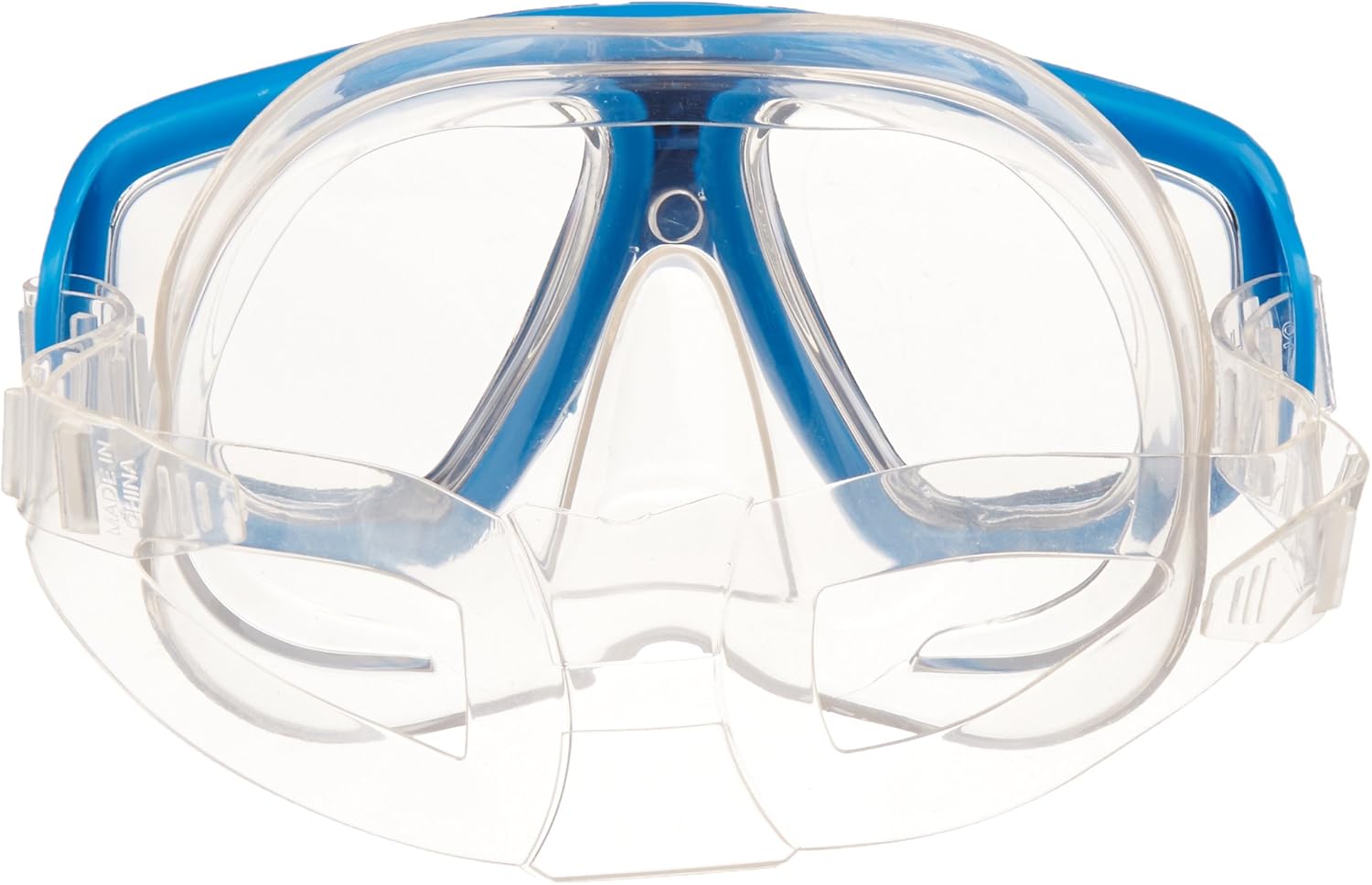 - Aviator style swim mask with polycarbonate lens and adjustable strap