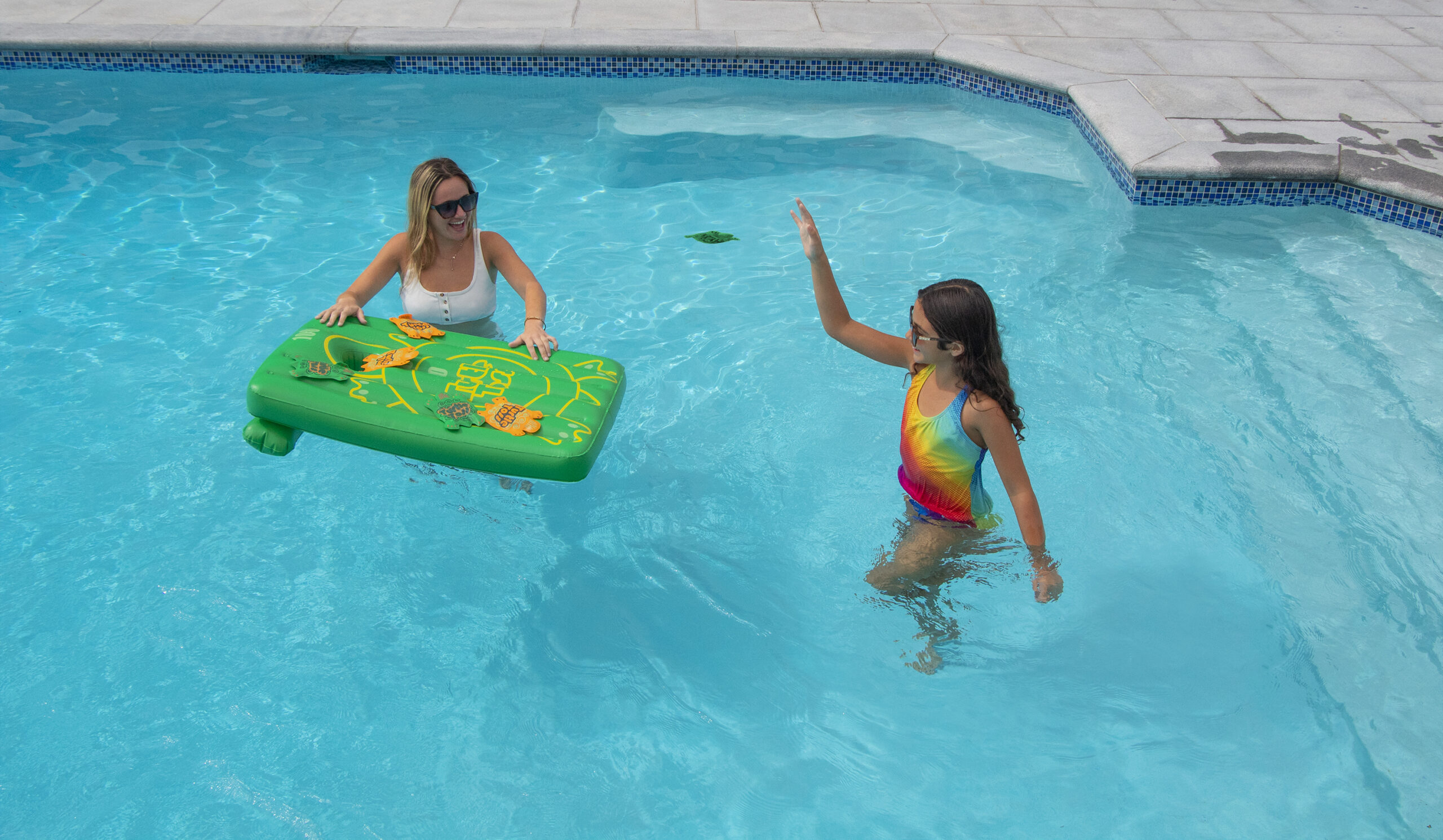 • Inflatable turtle toss swimming pool game
