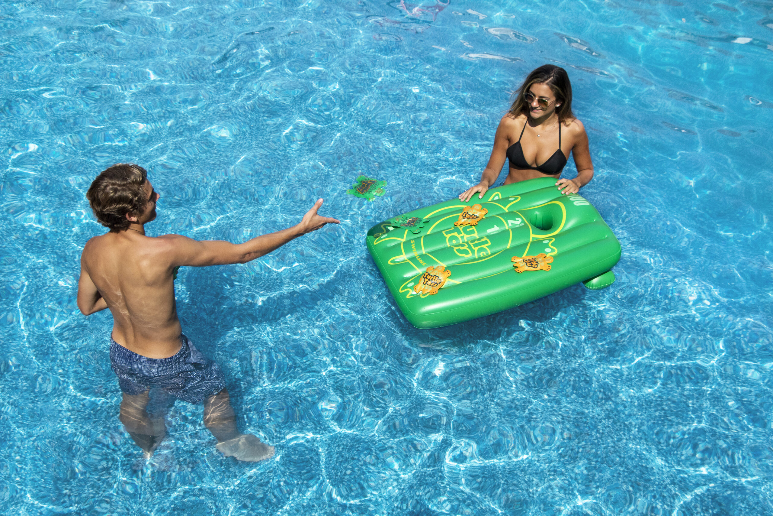 The Swimline Inflatable Turtle Toss Game – a great way to up your game during pool time! It includes an inflatable cornhole style board and six turtle-shaped bean bags, so you can enjoy hours of aquatic fun while you’re in the pool. And the best part? You can also use it outside the pool, so you can play any time! The turtles make a fun addition to the game, and durability means you’ll enjoy hours of preparation-free entertainment. Perfect for backyard pool parties and family summer events. Order the Swimline Inflatable Turtle Toss Game today and enjoy fast delivery, so you can get straight to the fun!